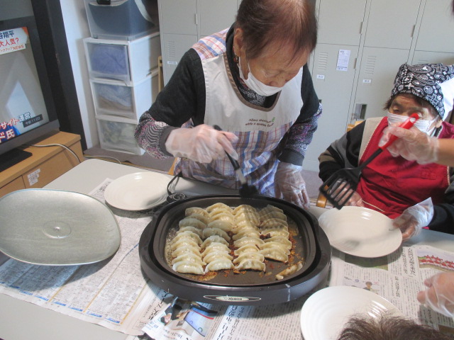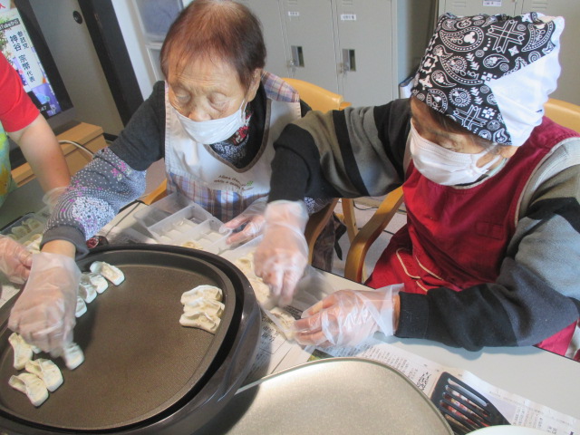 まずはメニューの中の一つ、ギョーザの仕込みから。利用者さんに手伝ってもらいました(*^^*)「キレイに並べろよ~」「これで