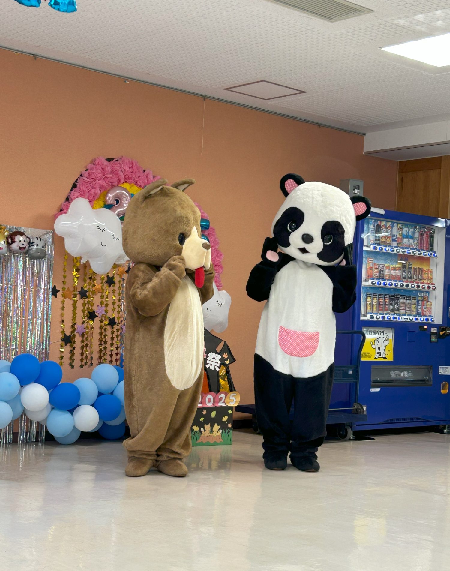 気仙苑2階・3階では、みなさんが創作したぬりえなどの作品展示、体操、ゲーム大会、カラオケ大会、職員によるハンドマッサージが行われました。着ぐるみのパレードも雰囲気を楽しく盛り上げ、館内をぐるりとめぐって利用者様に歓迎される一場面も…