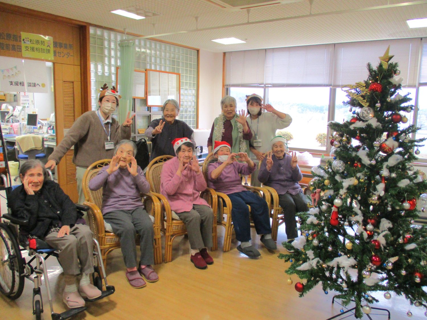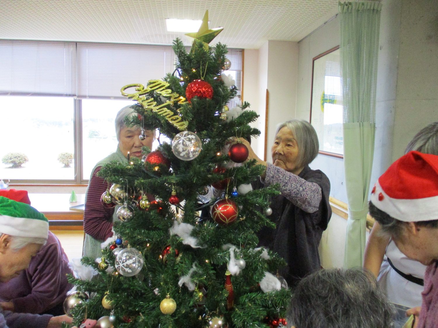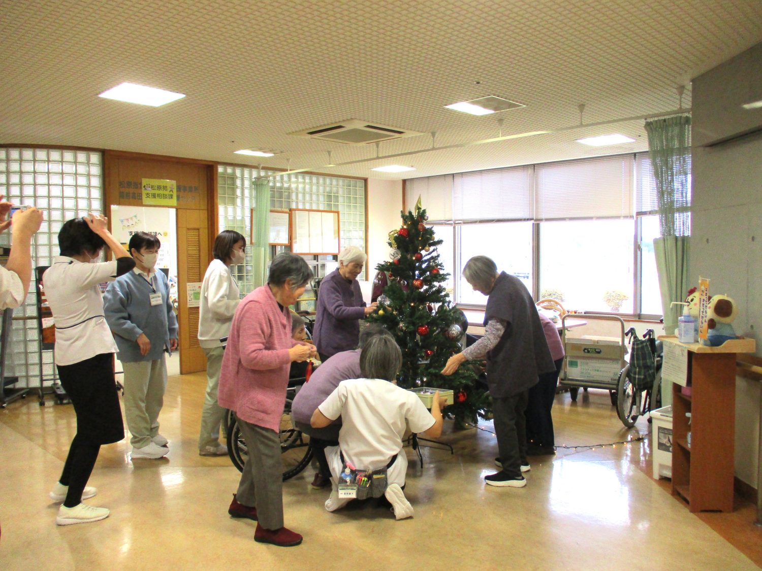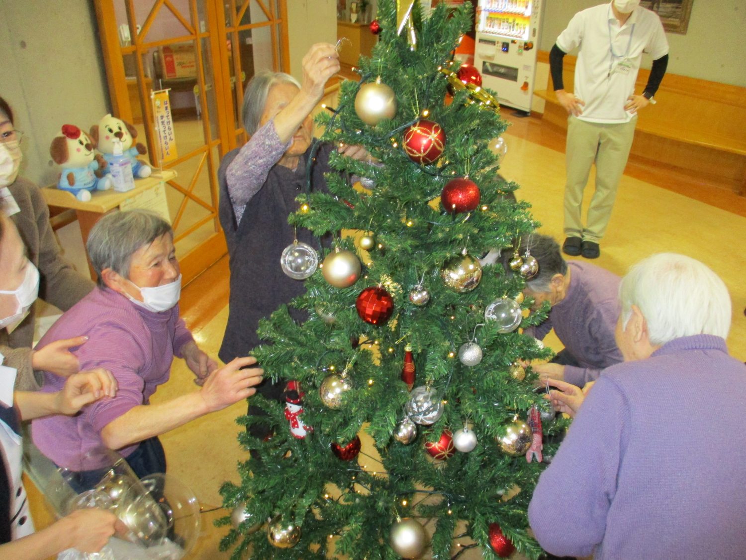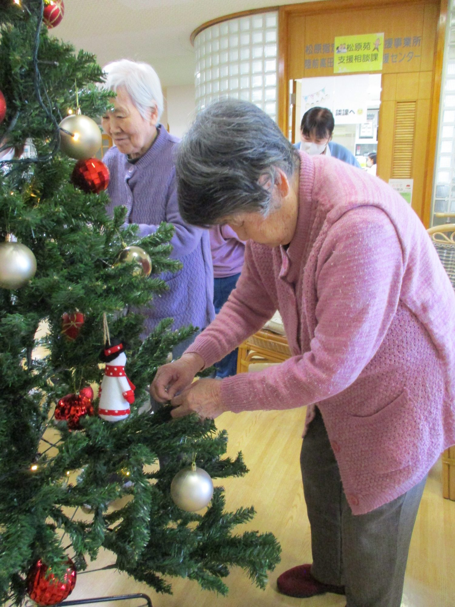 朝晩の冷え込みが厳しい今日この頃、松原苑ではクリスマスツリーが登場しました。飾りつけは利用者さんにお手伝いいただいて、なんともゴージャスに✨