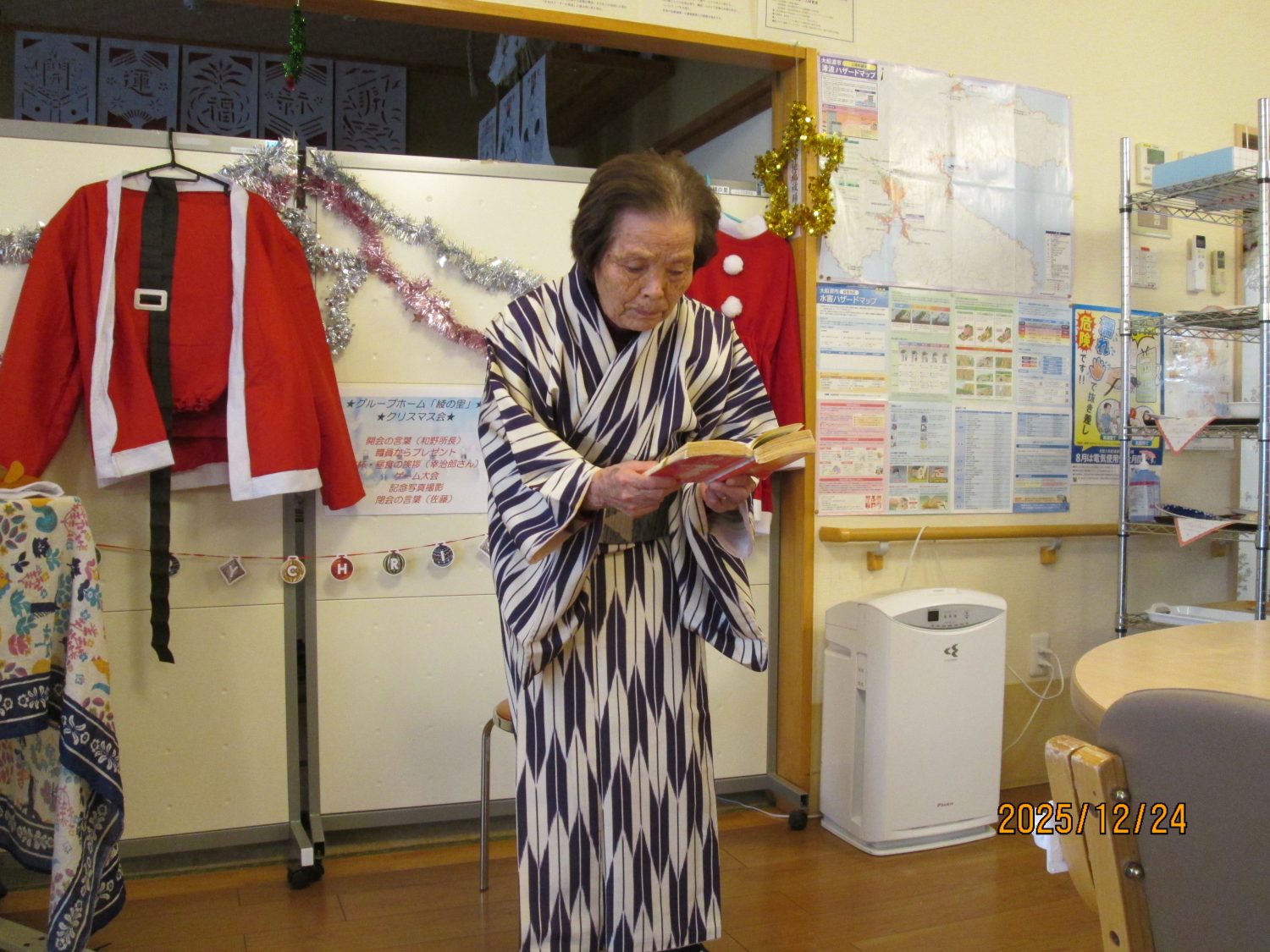 入居者様に若いころに得意だった民謡を皆さんの前で披露してもらい、花を添えていただきました。